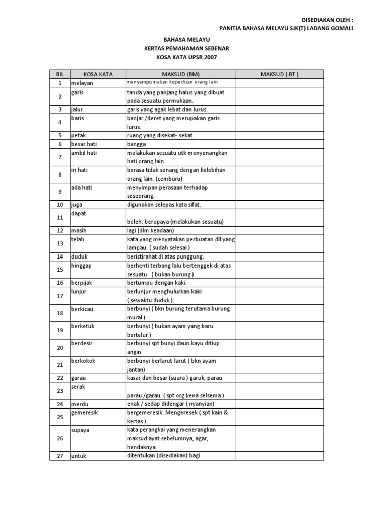 Kosa Kata Upsr 2007 2010 Bahasa Melayu Pdf